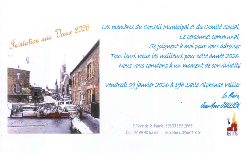 Mairie Les Iffs 3 place de la mairie 35630 Les Iffs 02.99.45.83.69 secretariat@lesiffs.fr Horaires: Lundi 9h 12h - 14h 17h Vendredi 9h 12h - 14h 17h